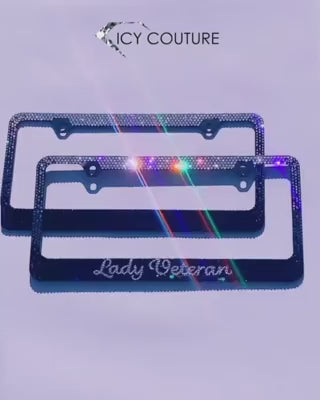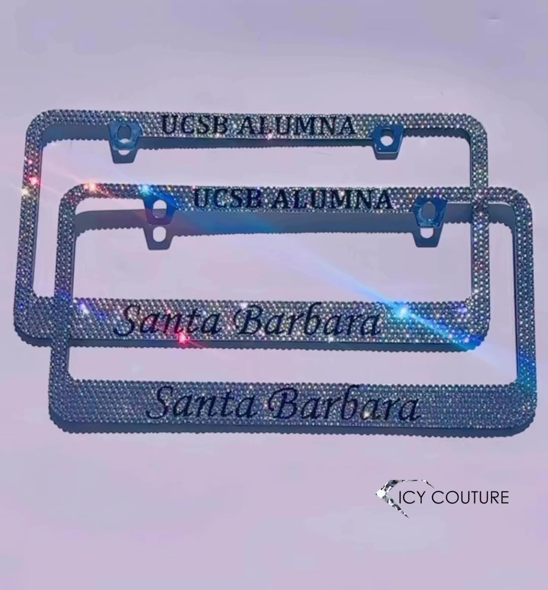 Show your message with ICY Couture’s Custom Message Swarovski Crystal License Plate Frame. Personalize your frame with your name, motto, or celebration—bedazzled by hand in California with Swarovski Crystals or Premium Glass Rhinestones.