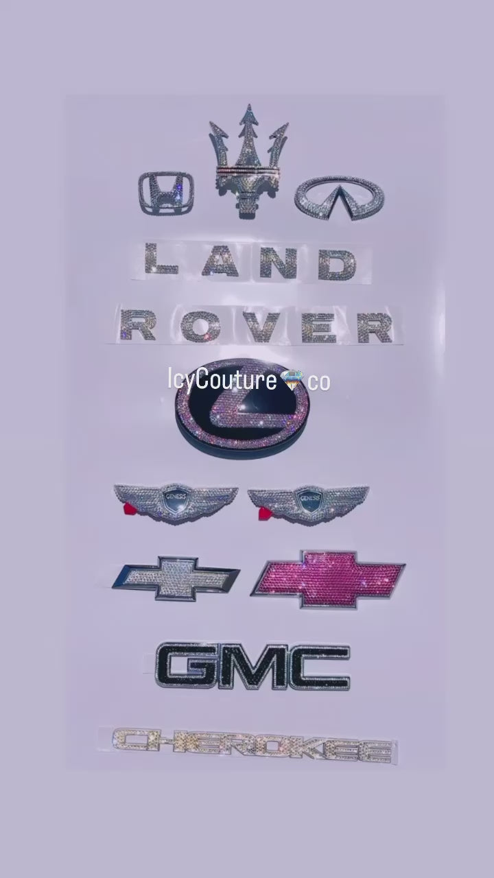 Each emblem is hand-crystallized with Swarovski Crystals or Premium Glass Rhinestones, designed to last and endure car washes and everyday wear.
