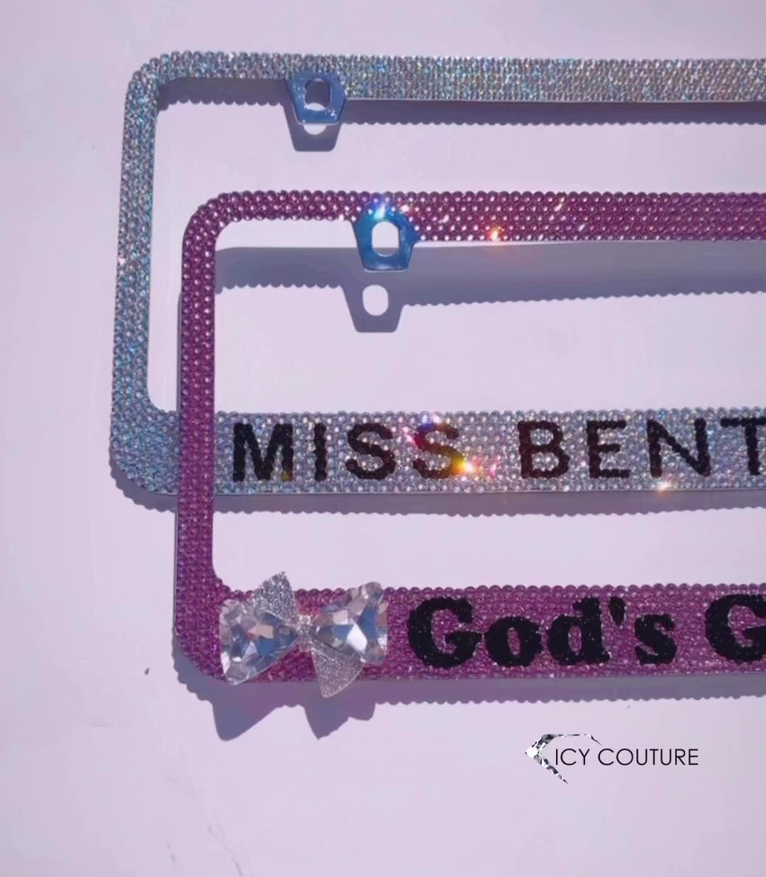 Explore diseños de marcos para matrículas cristalizados personalizados.