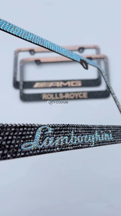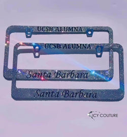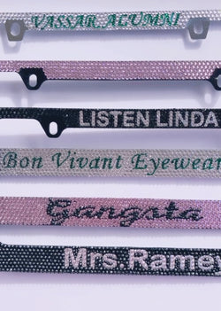 Show your message with ICY Couture’s Custom Message Swarovski Crystal License Plate Frame. Personalize your frame with your name, motto, or celebration—bedazzled by hand in California with Swarovski Crystals or Premium Glass Rhinestones.